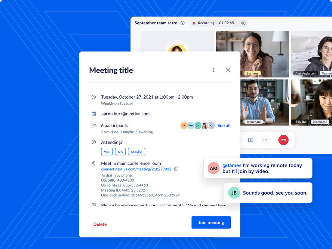 Get a complete business communications solution that offers video meetings, text messages, call routing, and unlimited calling nationwide.