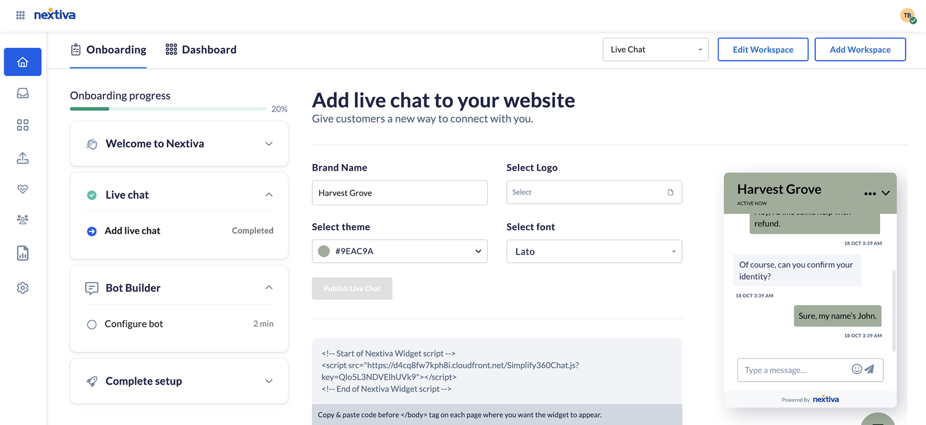See how easy it is to configure chat on your website in just 30 seconds, then customize the experience with our intuitive, no-code chatbot builder.
