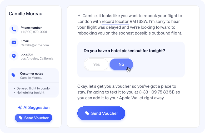 Dynamic agent scripting reduces repetitive tasks and ensures that agents say the right things at the right time. Pull in data from your CRM or CDP. Let every agent be like your best agent, regardless of their tenure.