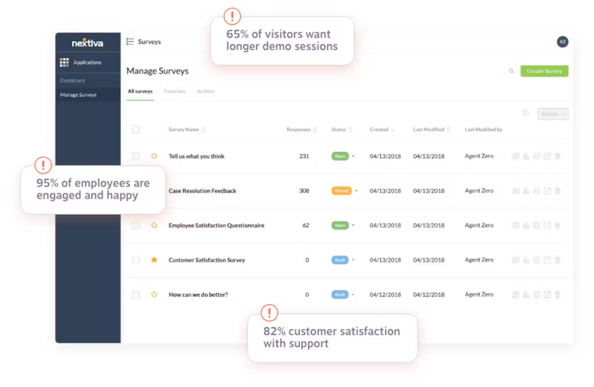 If you are mindful about your surveys, they can still be an excellent business tool. Nextiva Surveys, for example, make surveys a cinch to build. Real-time results are available to you in clear, easy to understand spreadsheets and graphs.