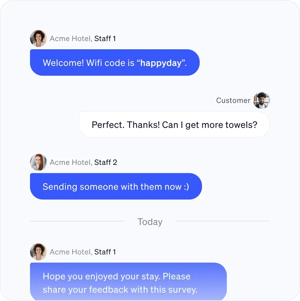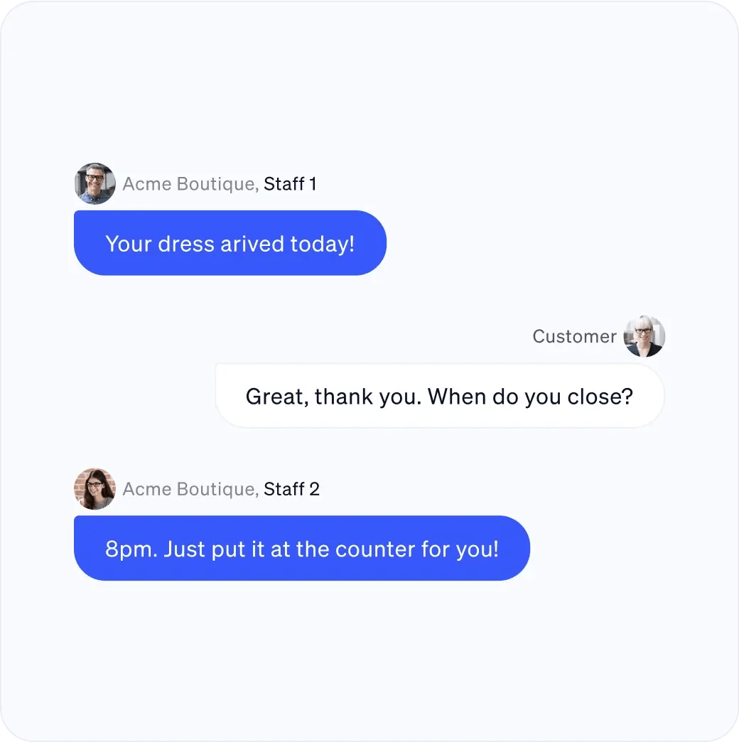 Surprise customers with quick, personal service. Say goodbye to manual hand-offs — any staff on duty can manage requests via text.